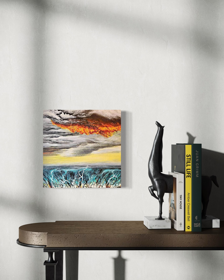 Welcome to the captivating world of surrealist art with its environmental and psychological undertones with our artwork, Hell's Sky. Created using mixed media, this piece is both complex and compelling, offering viewers a unique visual experience. The crackle-like texture adds another dimension to the work, creating a sense of depth that draws the eye and evokes emotion. The colors and abstract forms of this piece reflect the nuances of the unconscious and the imagination, offering an artistic exploration of the human psyche. Perfect for art lovers looking to enrich their surroundings with a striking piece.