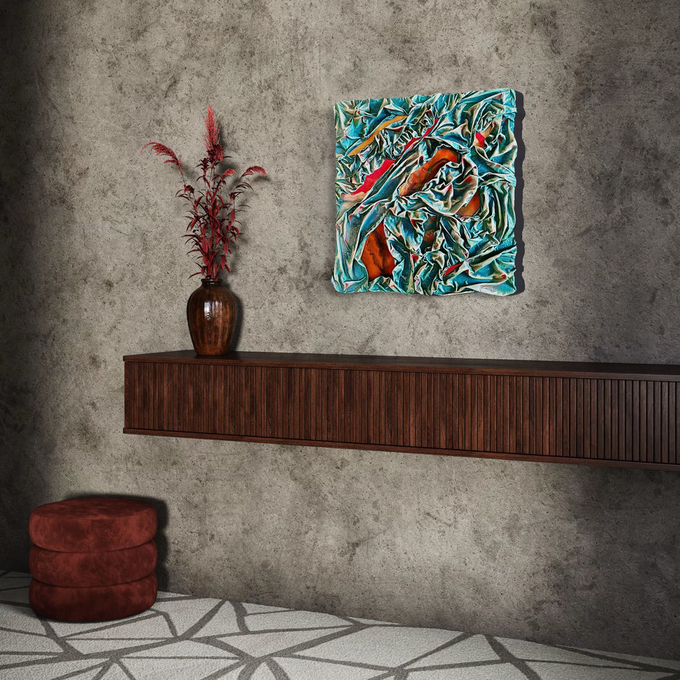Plongez dans les profondeurs de l'art structural, éco-responsable et psychologique avec notre pièce unique, Eaux troubles. Créée à partir de tissus et de résine recyclée, cette œuvre livre un message percutant sur notre existence. Dès notre naissance, nous sommes confrontés à un monde tumultueux, symbolisé par les eaux agitées qui nous entourent. Les pleurs deviennent nos premiers sons, annonçant peut-être les défis que nous devrons affronter tout au long de notre vie. Plongez dans cette œuvre captivante et laissez-vous emporter par sa puissance émotionnelle et sa profonde signification.