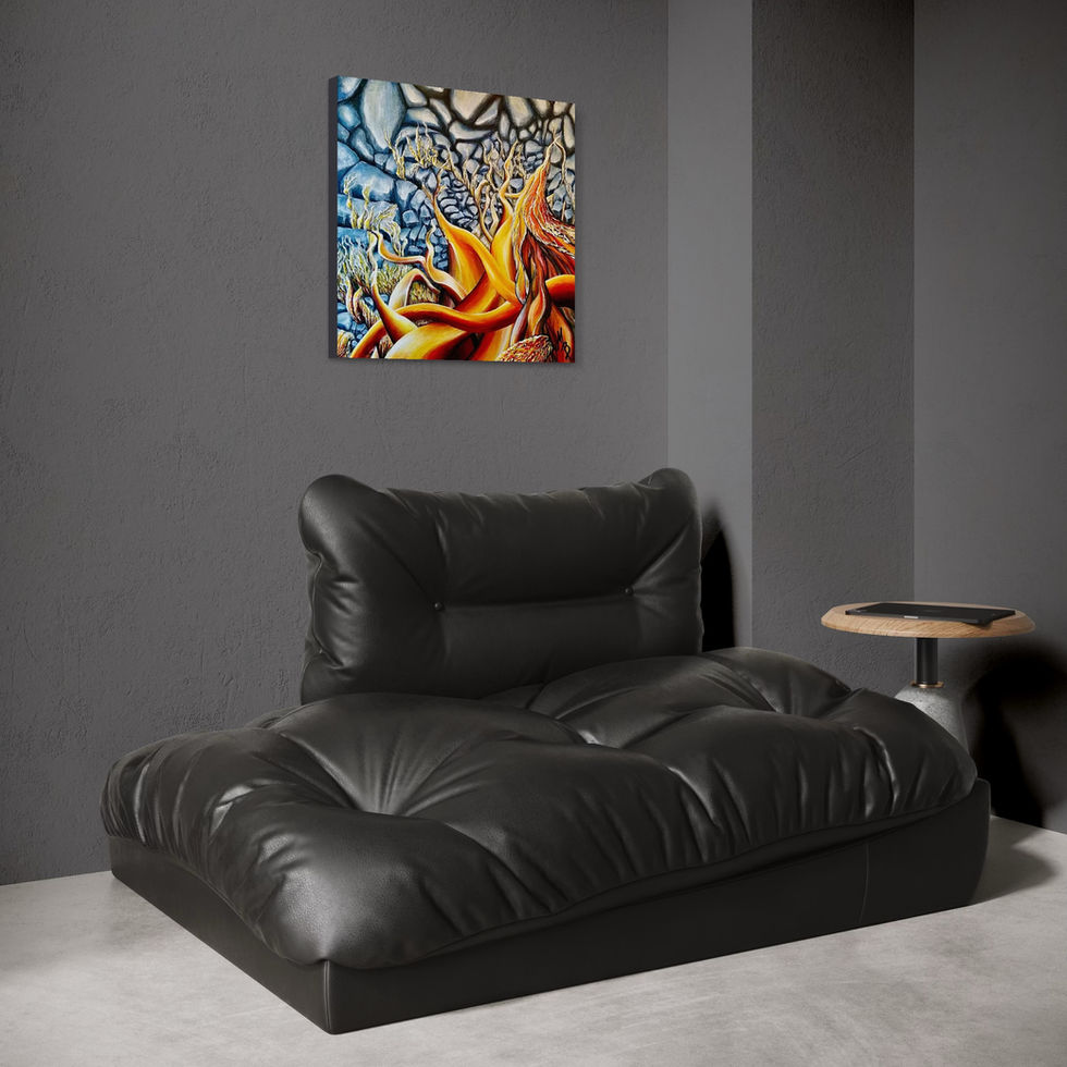 Cette œuvre surréaliste et psychologique représente les discussions incessantes entre notre petit démon et notre petit ange, symbolisés par les pierres qui étouffent la fougue. Cette toile au talent assumé est une pièce inusitée et un incontournable pour les amateurs d'art qui recherchent des œuvres provocantes et stimulantes.
